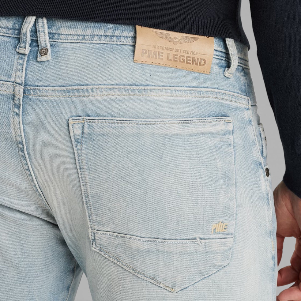 Details: outline van een vliegtuigvleugel op de achterzakken, subtiele PME Legend-branding.