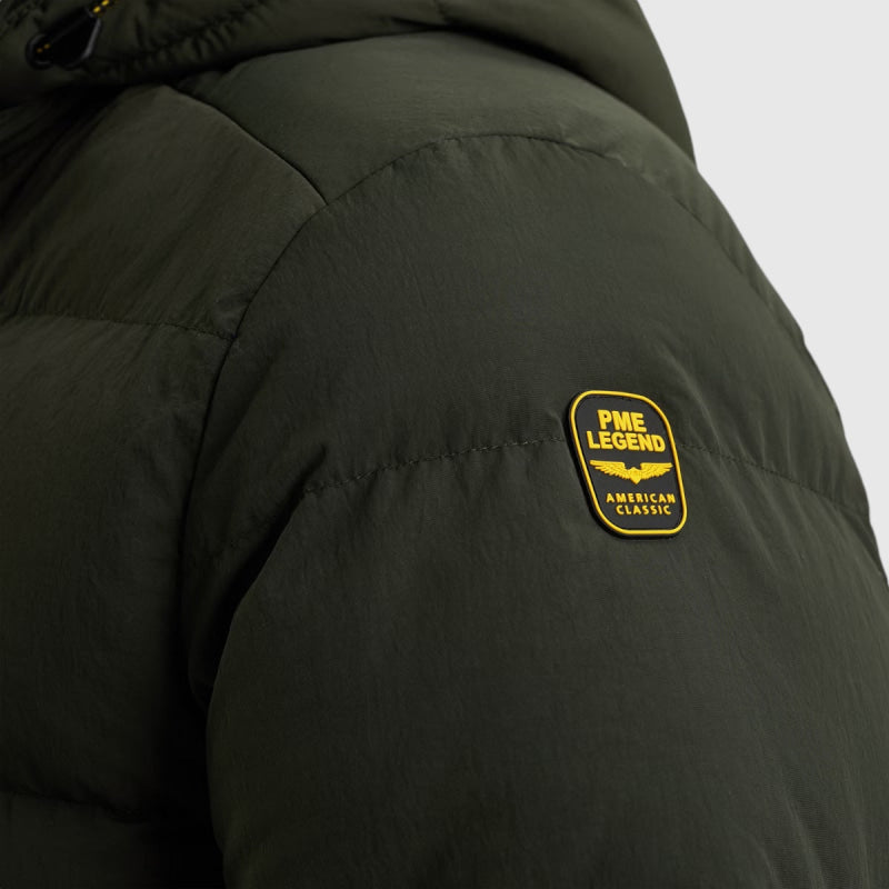 Die PME Legend Brewster Jacket ist eine robuste Pufferjacke, die Sie bei kaltem Wetter warm und bequem hält. Diese Jacke aus reichhaltigem Nylon-Crunch-Material bietet einen einzigartigen Look. Die Tech Down-Füllung sorgt für zusätzliche Wärme und Komfort, während die wasserabweisenden Eigenschaften Sie vor Nässe schützen. Die abnehmbare Kapuze und der elastische Bund bieten zusätzlichen Schutz vor Kälte und machen diese Jacke perfekt für alle Wetterbedingungen.