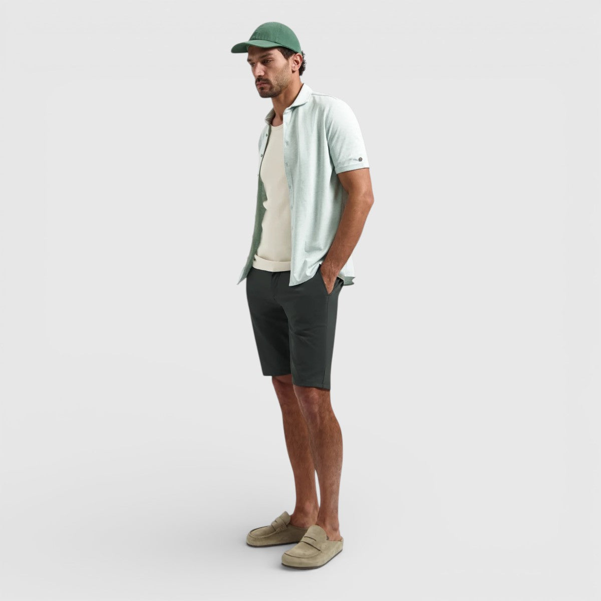 Het No Excess Shirt Short Sleeve Jersey Melange Stretch combineert een minimalistisch design met een moderne en comfortabele uitstraling. Dit overhemd is perfect voor een casual zomerse look dankzij de korte mouwen en de strakke knoopsluiting. De zachte melange stof en de lichte stretch zorgen voor ultiem draagcomfort.