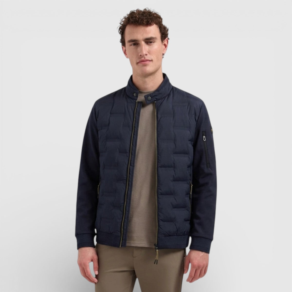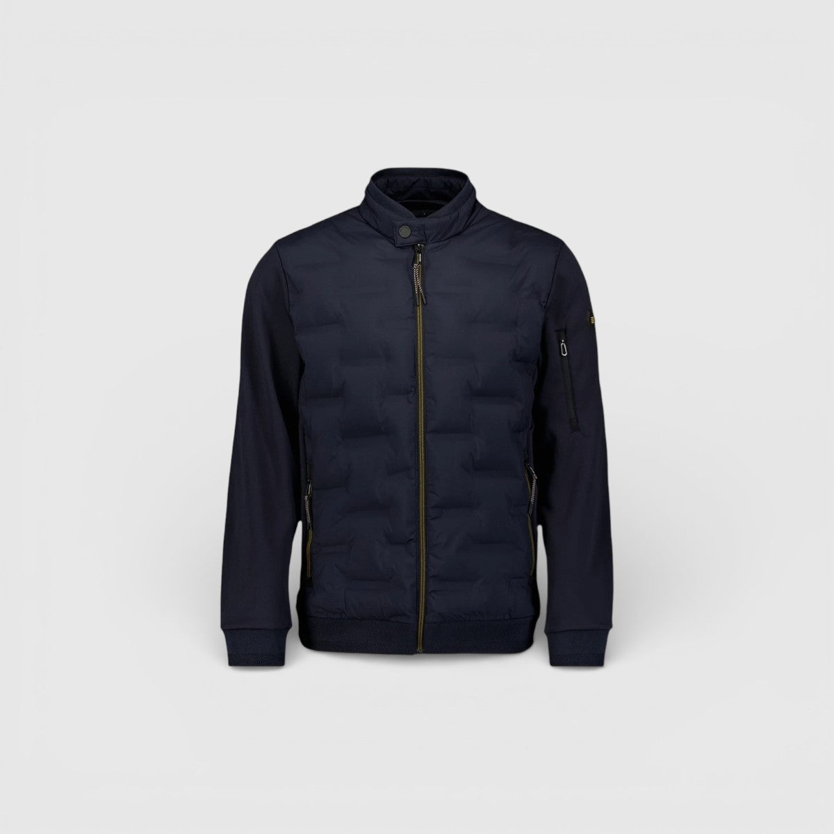 Op zoek naar een moderne korte zomerjas met een technische uitstraling en een duurzamere materiaalsamenstelling? Kies dan voor de No Excess Zomerjas Korte Fit in Sealed Knitted Mix en Bestel Veilig Online bij Versteegh Jeans.