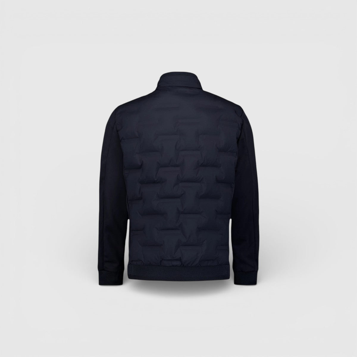 Stof: sealed knitted mix met een moderne, technische look.