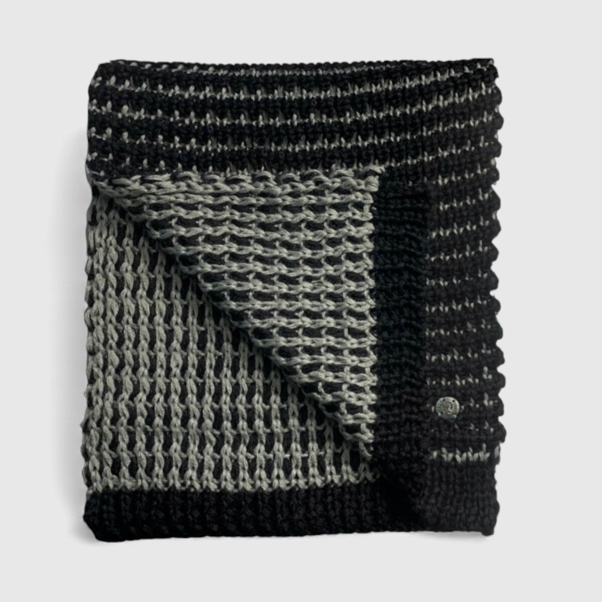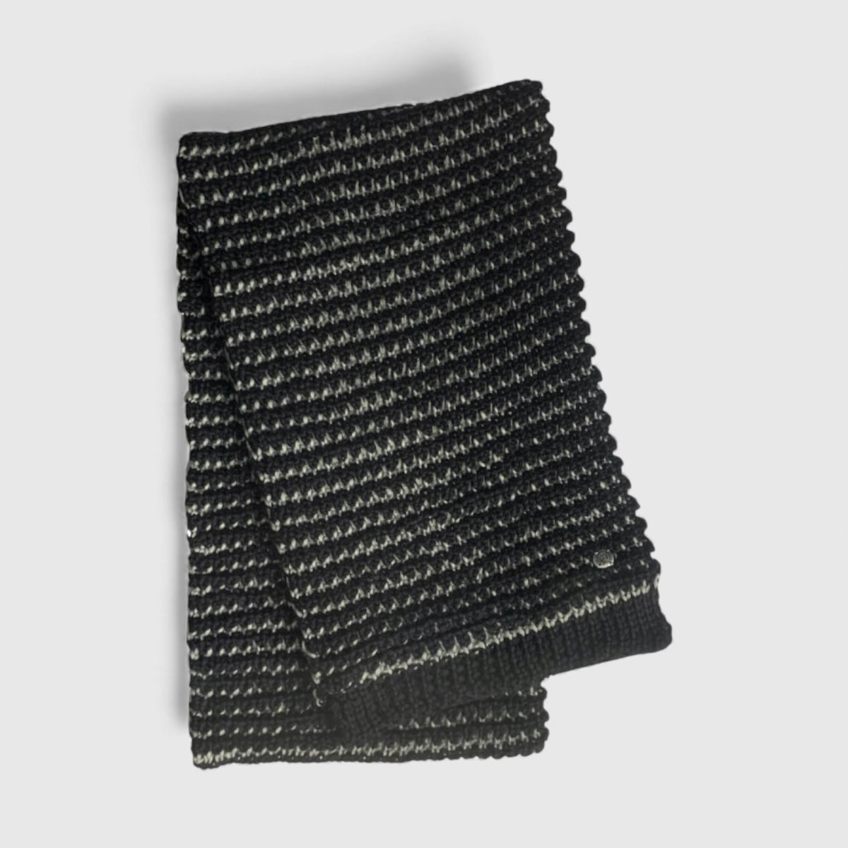Une écharpe en tricot côtelé en fonte composée de laine et d'acrylique en noir.