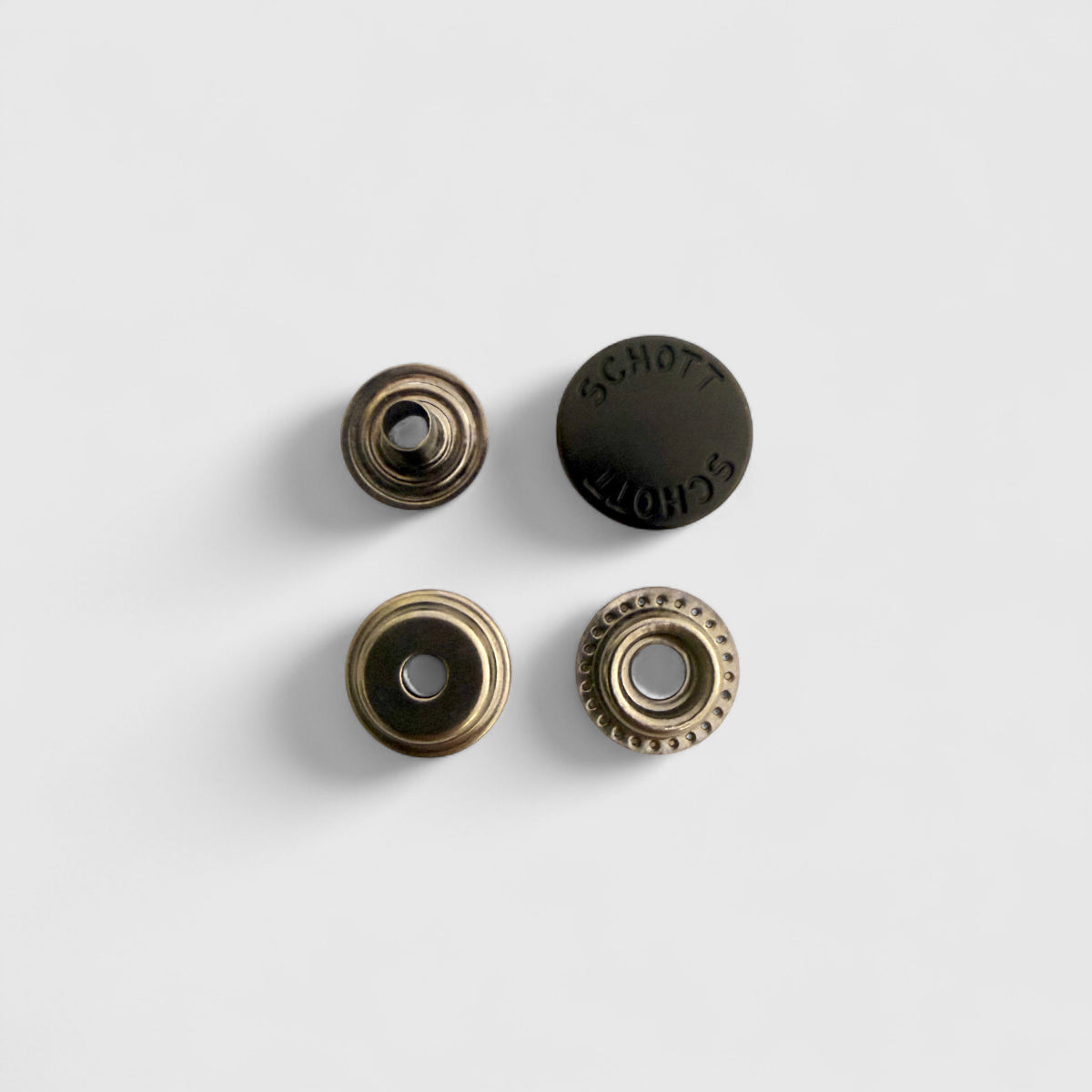 • Originele Schott drukknoppen met gegraveerde logo-afwerking